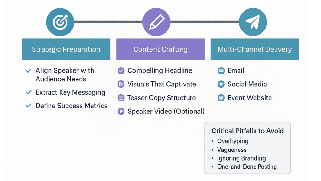 Here, we present a clear keynote speaker announcement roadmap to help you craft a message that captures attention, builds excitement, and reinforces the value of your event.